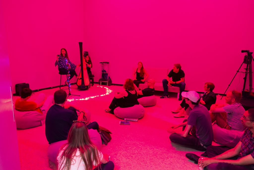 12 Künstler aus Birmingham und Frankfurt am Main, 9 Tage, 1 Projekt: In Zeiten der Globalisierung ist Zusammenarbeit wichtiger denn je. Für die Lösung einer gemeinsamen Aufgabe sind im Arbeits- und Entwicklungsprozess der Austausch von verschiedenen Perspektiven und ein offener Raum zur Entfaltung erforderlich. „Enough Room to Grow?“ ist ein Kunstprojekt, das den facettenreichen Prozess einer Gruppen-Kollaboration thematisiert. – Bereits im vergangenen Sommer entwickelten die Beteiligten der Frankfurter Hochschule für Musik und Darstellende Kunst und des Royal Conservatoire in Birmingham gemeinsam ein performatives Event anlässlich des 50. Geburtstags des Heavy Metal.